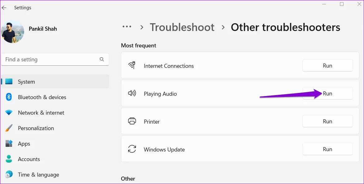 Windows has a built-in tool to detect and fix audio problems automatically.